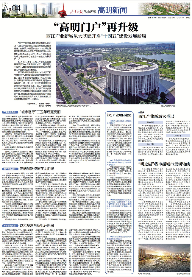 而且,西江产业新城对优质项目的磁聚效应还在不断增强。统计数据显示,西江产业新城2020年牵头重点项目17个,总投资238.99亿元,占高明全区总投资额的24.1%。