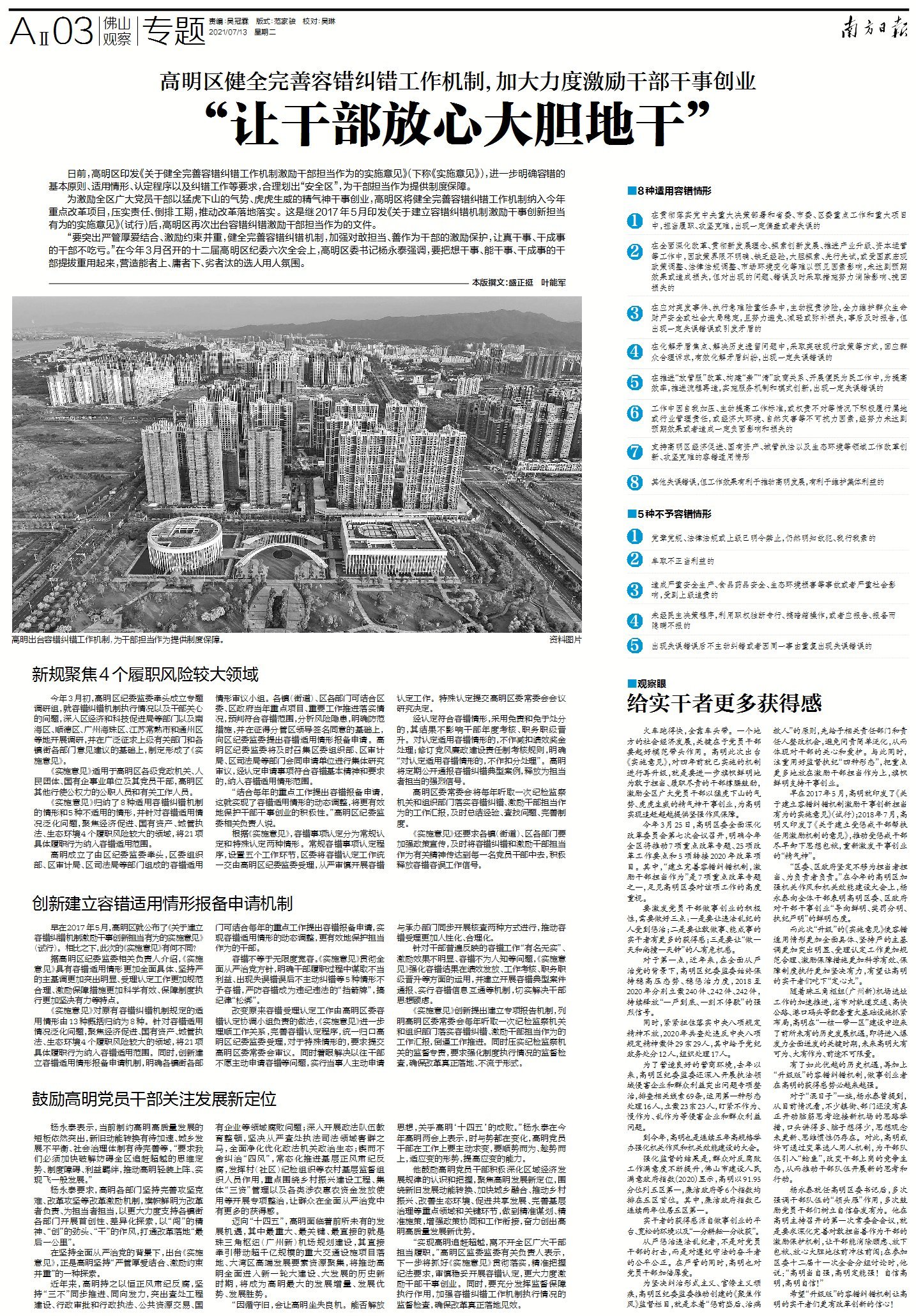 高明出台容错纠错工作机制,为干部担当作为提供制度保障。资料图片