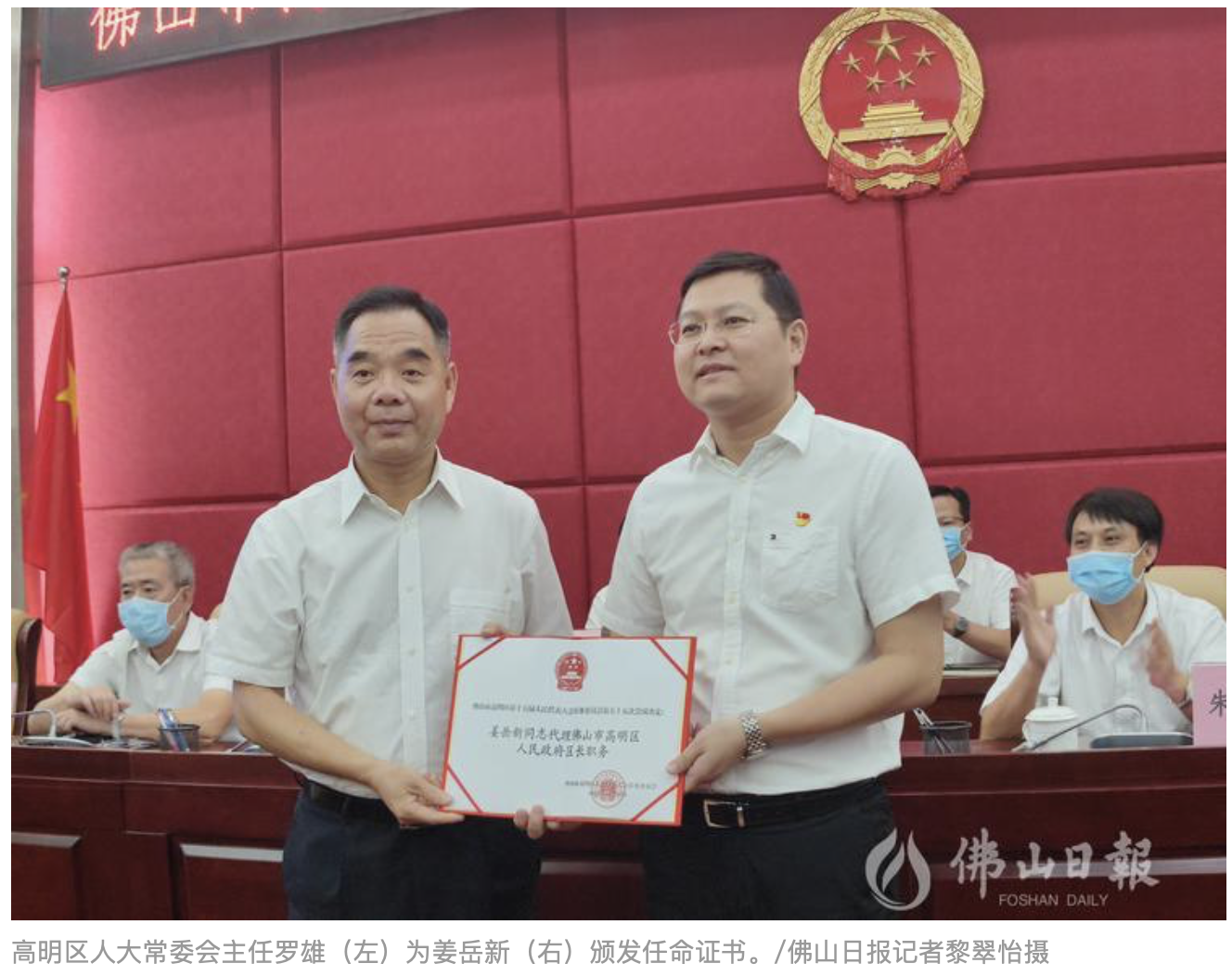 今日(10月11日)下午,高明区十五届人大常委会第五十五次会议召开,审议通过了有关人事任免事项。会议决定姜岳新代理高明区人民政府区长职务,接受梁耀斌因工作调动辞去高明区人民政府区长职务的请求。