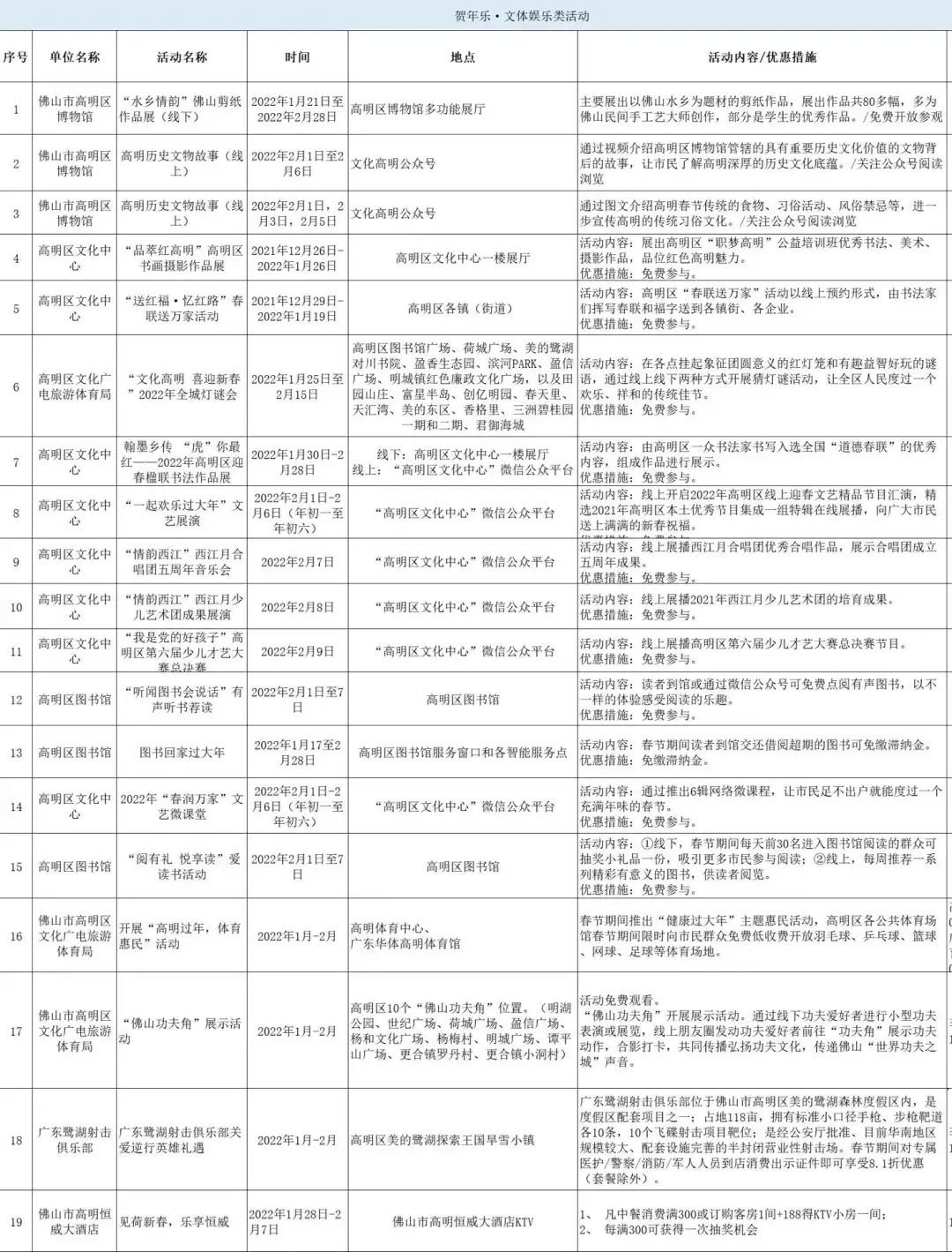 在做好新冠疫情防控工作前提下,今年高明依旧采用线上线下相结合的形式,组织线下文博展览展示活动,推出文体场馆优惠举措,进一步丰富群众的精神文化生活,调动群众健身运动的积极性。