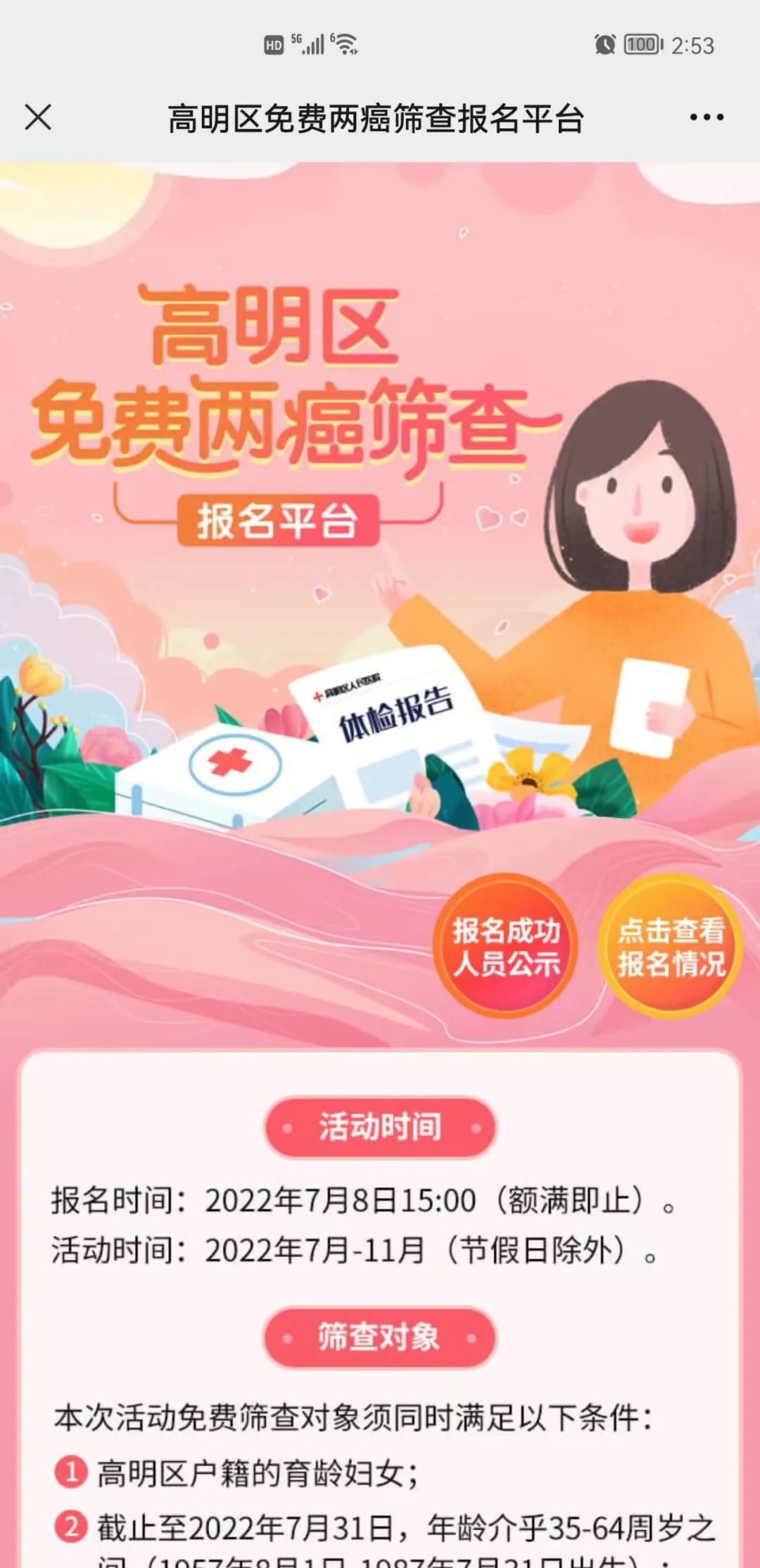 (二)2019-2021年未享受过高明区免费“两癌”筛查;