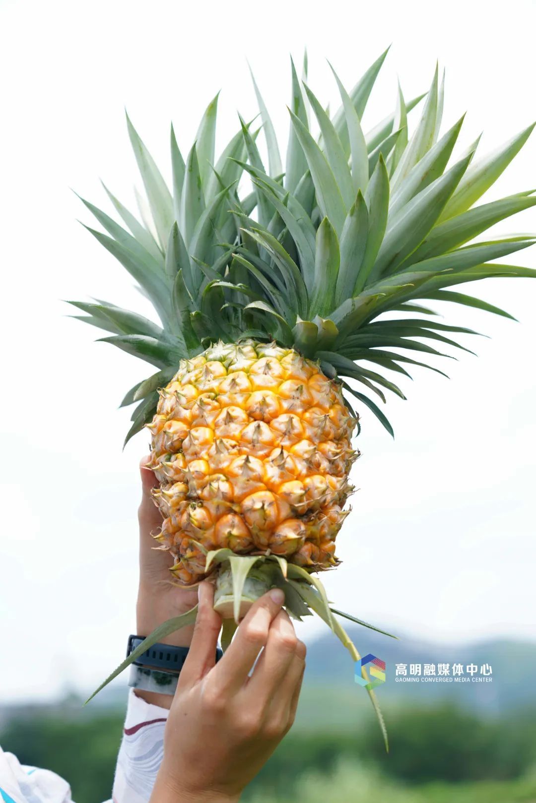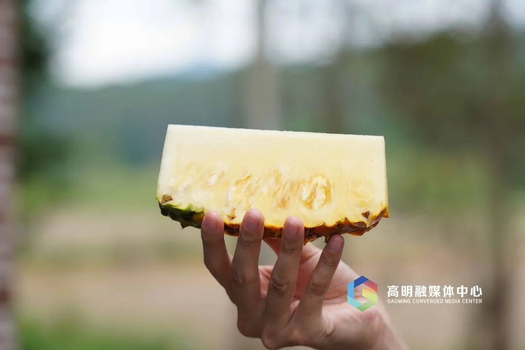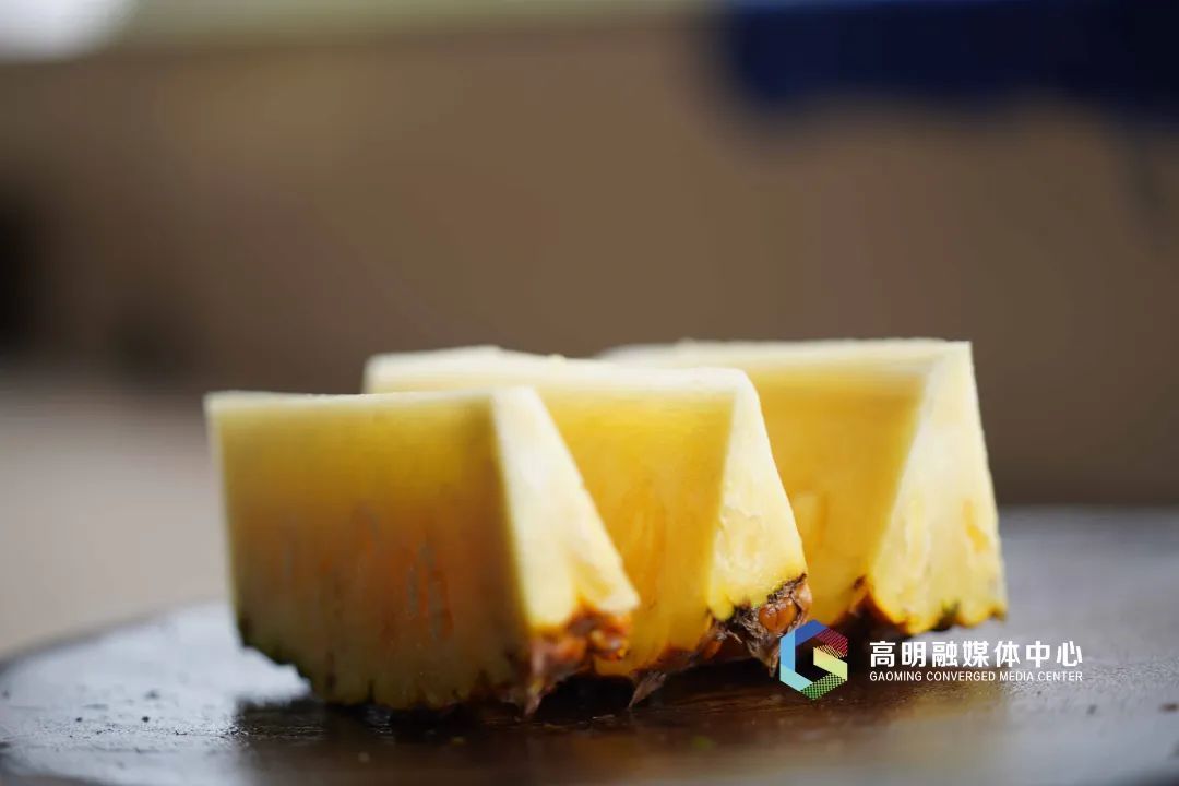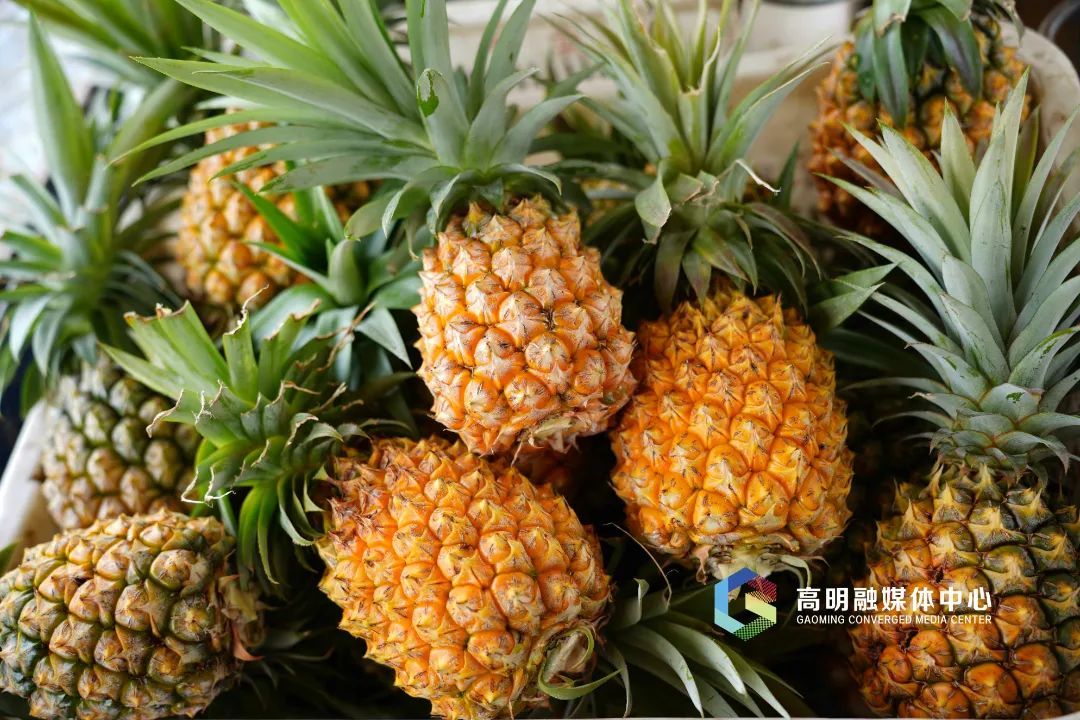 拨开带刺的叶子,一个个黄澄澄的凤梨便冒了出来。凤梨是热带水果,因此近半月来高明连续的高温天气有利于凤梨生长,今年当地的凤梨比去年更加香甜可口。