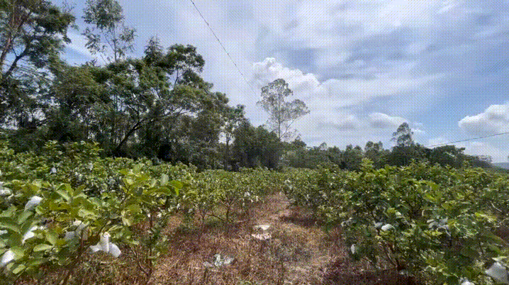 无独有偶,更合镇志忠生态农庄约12亩的番石榴树都套上了白色网格泡沫和透明塑料袋,防止风雨吹打和虫害叮咬。