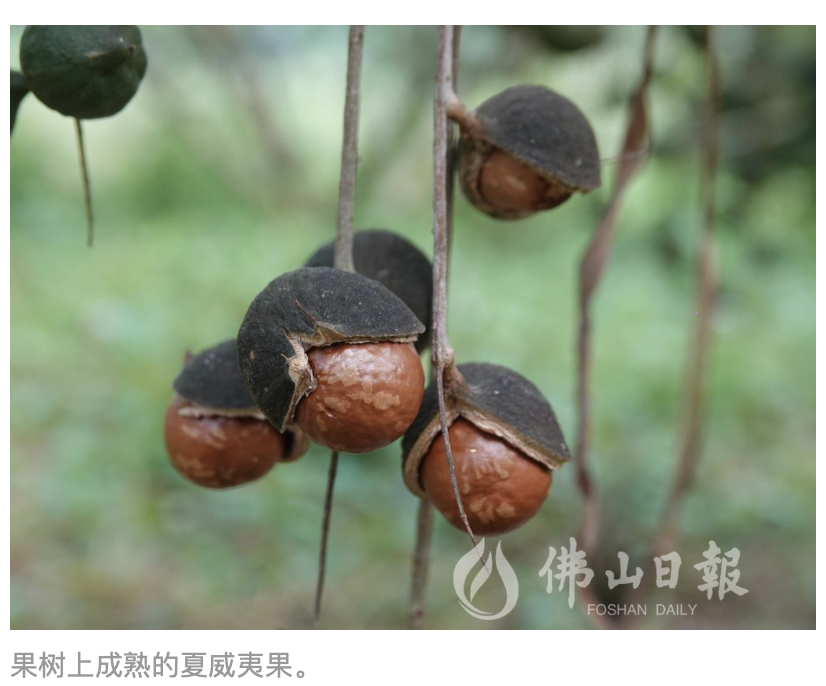 忠叔介绍,夏威夷果树的结果周期比较长,从栽种到收成至少需要3到4年时间,今年是第一年挂果,产量约有几百斤。有喜爱夏威夷果的街坊不妨前来购买。
