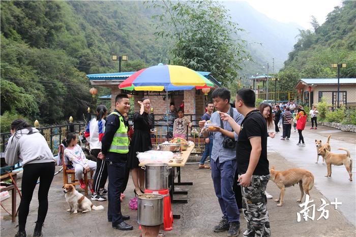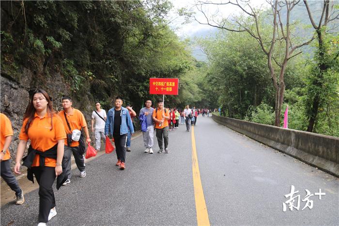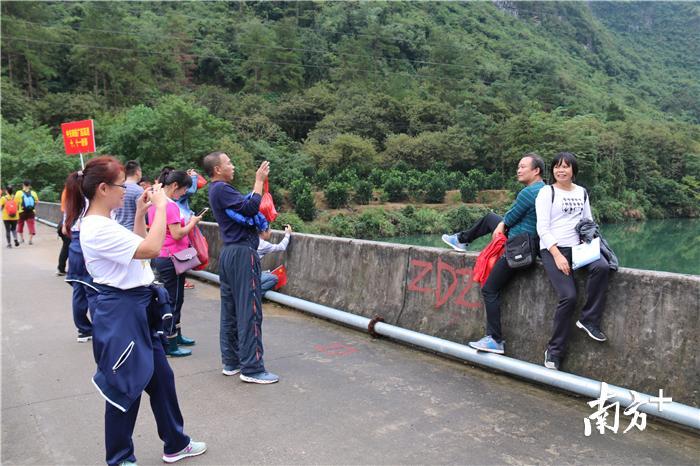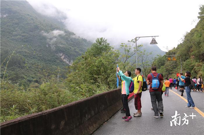 广东第一峰天南大裂谷线路沿途秀丽的风光获得参赛者的交口称赞。驴友们频频驻足,吸氧、观景与拍照,享受舒展时光。来自中山的陈先生带着读小学的儿子和朋友们专程过来参加徒步活动,“一路的景色都很美,有山有水,是一条很不错的休闲徒步线路。”