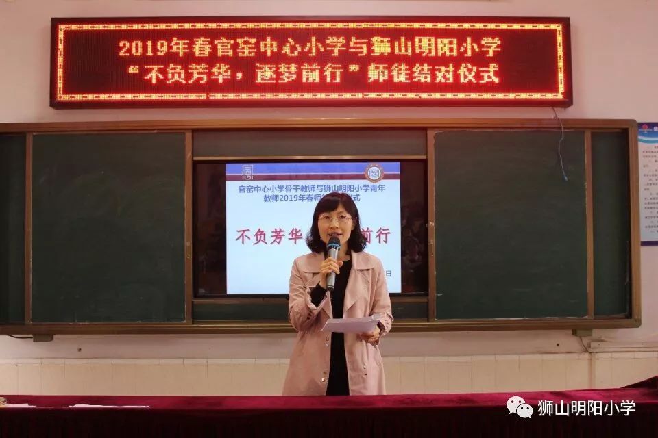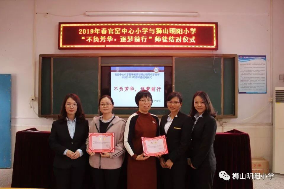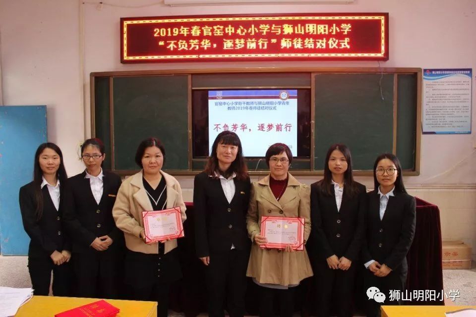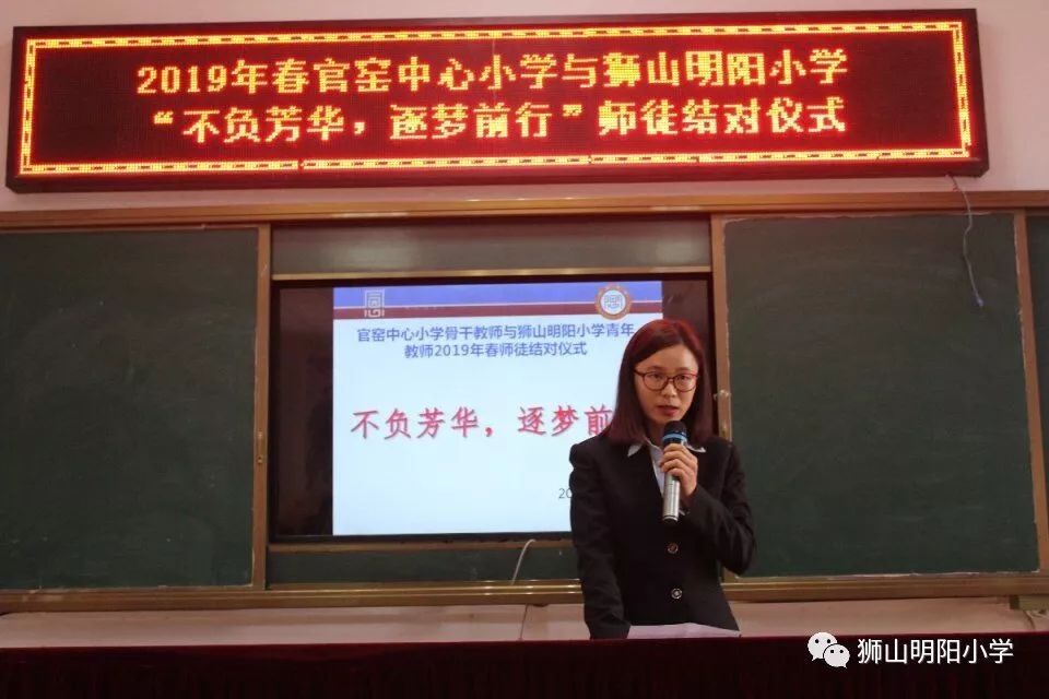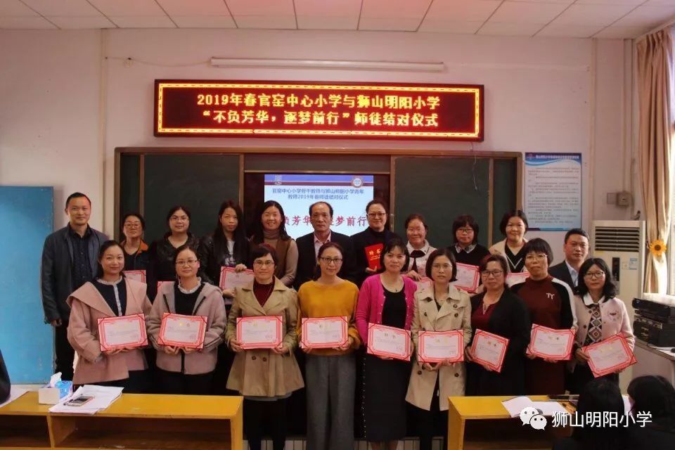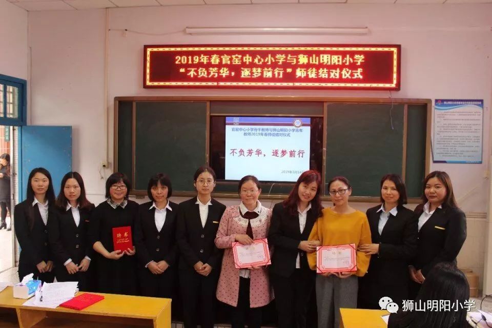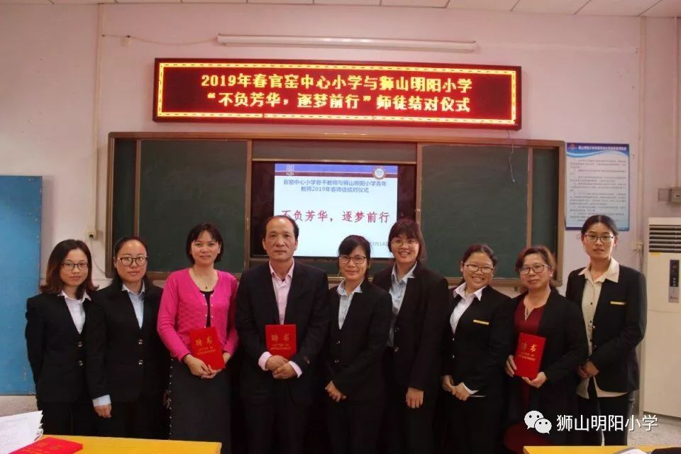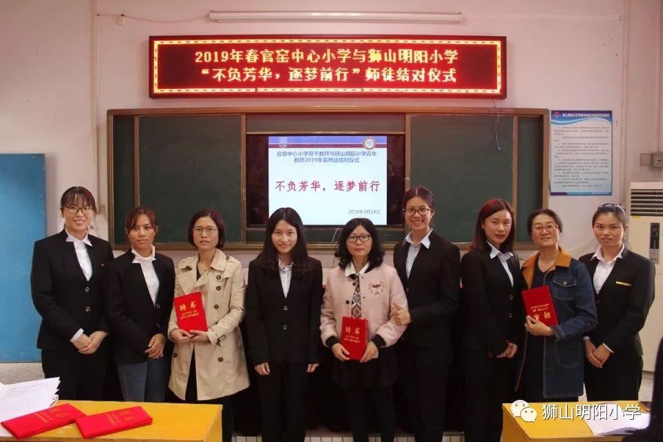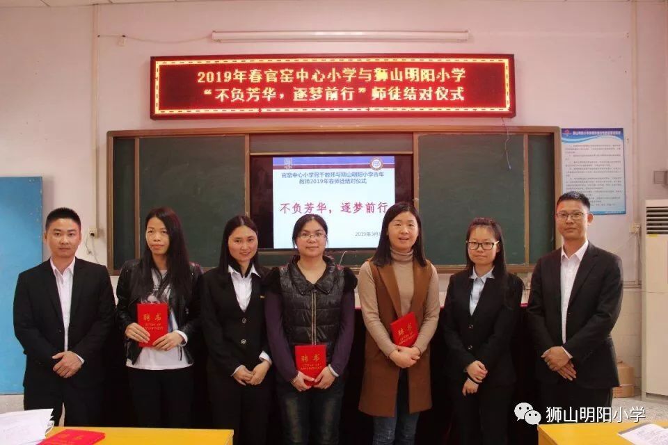 3月14日,为打造优秀教师团队,构建“学研行”组织,全面提高教育教学质量,让新市民孩子享受优质教育,佛山市南海区狮山明阳小学从官窑中心小学聘请了19位优秀教师作为明阳小学的青年教师的导师。导师们听了徒弟的课,提出了宝贵意见后,举行了师徒结对仪式。