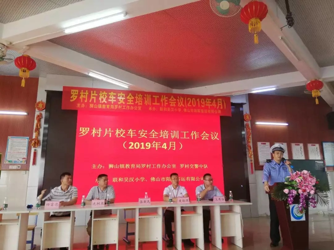 为进一步加强罗村片校车安全管理,切实抓好五一前校车安全检查工作,认真排查和整治各类校车安全隐患,防范校车安全事故发生,4月29日上午,狮山镇教育局罗村片区在狮山镇联和吴汉小学召开校车安全负责人工作会议。本次会议有罗村交警中队副队长张新民,罗村教育办冼树泉主任,佛山市阳晖客运有限公司总经理黄炼辉,联和吴汉小学陈国权校长,罗村教育办办事员杨富忠以及负责校车安全的领导参加,由罗村教育办办事员杨富忠主持。