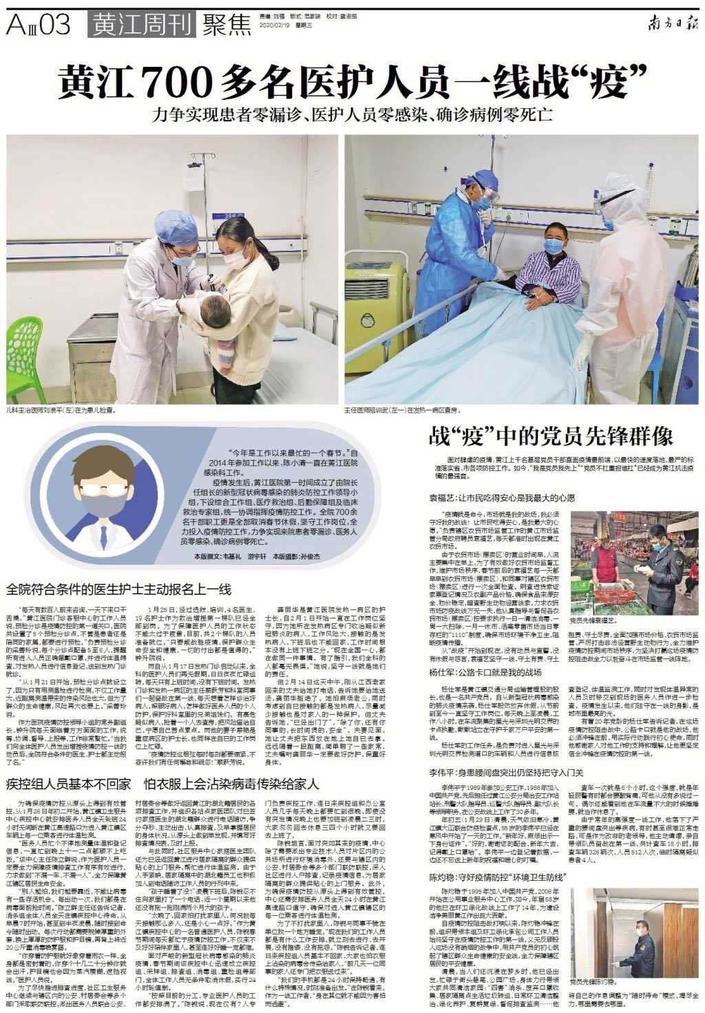 龚丽华是黄江医院发热一病区的护士长,自2月1日开始一直在工作岗位坚守,因为她所在发热病区专门收治疑似新冠肺炎的病人,工作风险大,接触的是发热病人,下班后也不能回家,工作时间根本没有上班下班之分。“现在全国一心,都在做同一件事情。有了指引,我们全科的人都毫无畏惧。”她说,坚守一线就是她们的责任。