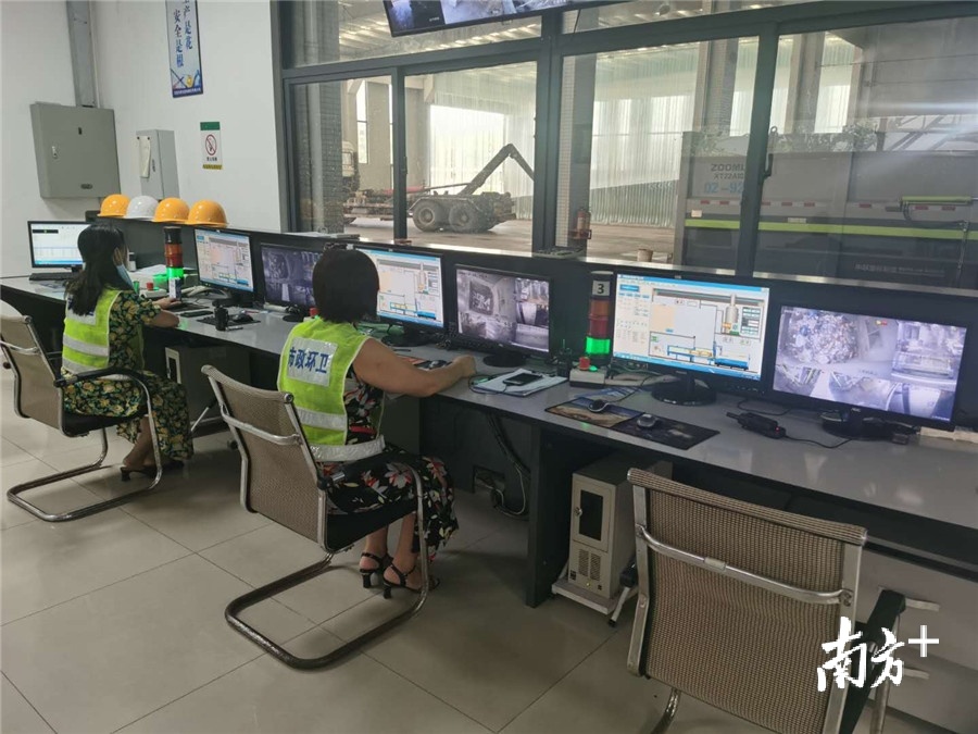在黄江镇生活垃圾集中压缩式中转站,笔者看到中转站的作业流程都可以在中央监控管理系统、电视监控系统、交通指挥系统组成的“最强大脑”指挥下操控完成。