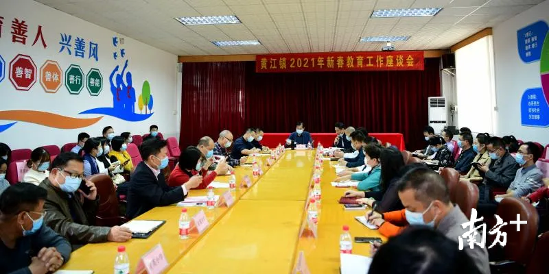 日前,黄江镇委书记苏东组织召开2021年新春教育工作座谈会,全镇各中小学校长、幼儿园园长以及成人学校校长齐聚一堂,共同谋划全镇教育事业发展大计。镇委委员赵东闽主持会议。