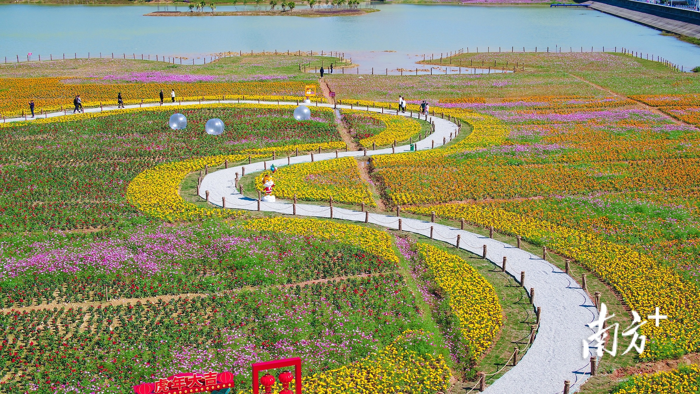 蝴蝶地水库碧道因地制宜,充分融入周边自然风光,通过花海、水景、绿化种植等打造滨水景观。从空中俯瞰,水库上方的两只蝴蝶景观造型栩栩如生。碧道旁的花海则根据不同季节特点,种植时令花卉,构成美丽花海景致,吸引了大量市民前往打卡拍照。