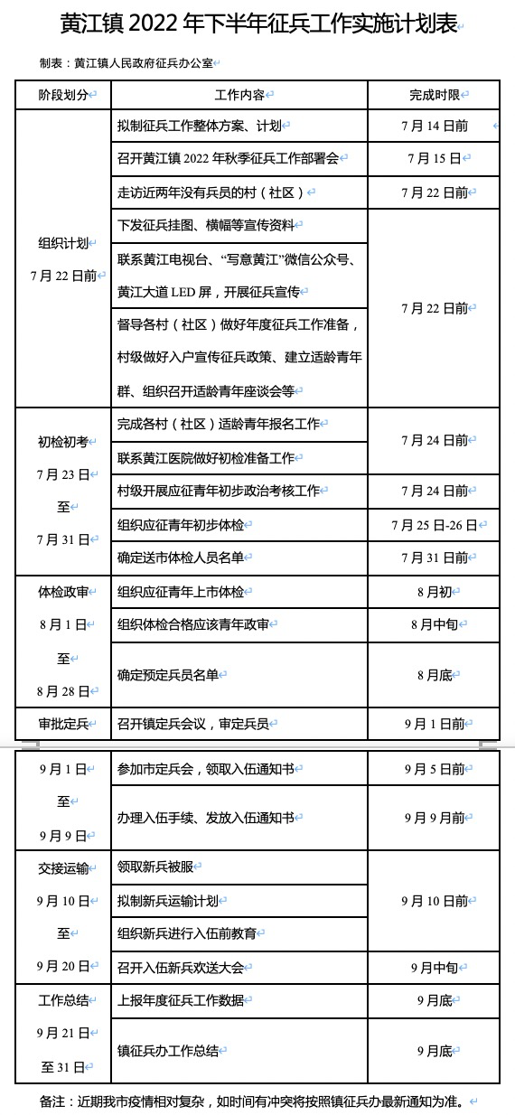 当前,黄江2022年下半年征兵工作已经启动,具体安排如下: