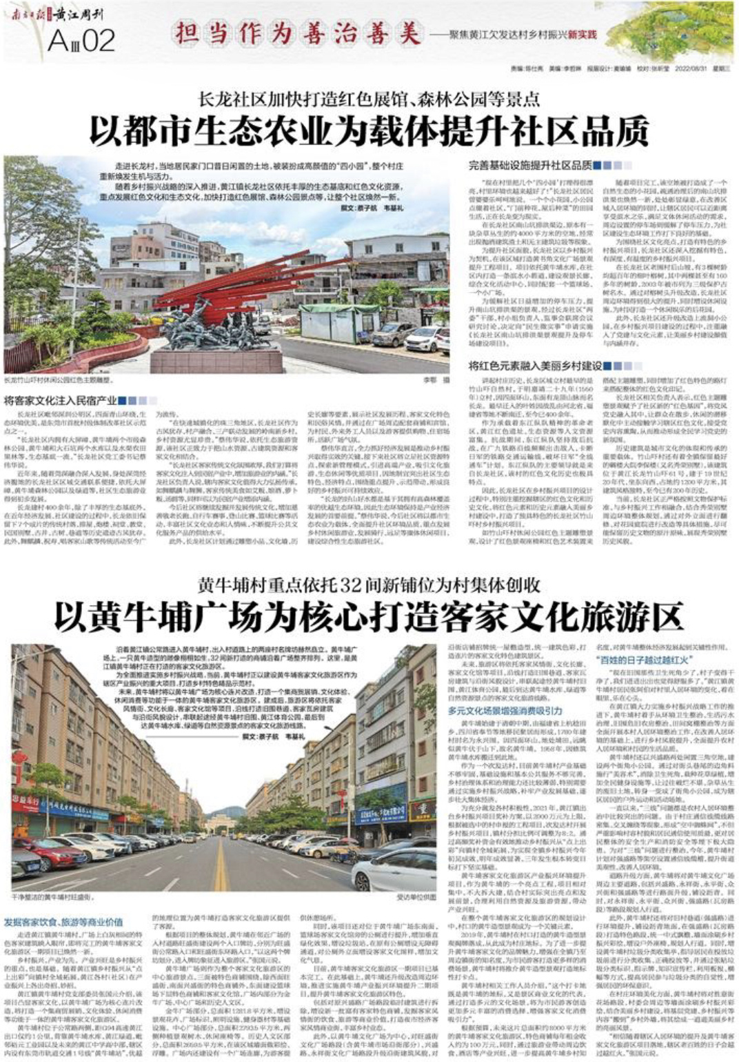目前,黄牛埔客家文化旅游区一期项目已基本完工。在此基础上,黄牛埔还升级改造周边环境,推进实施黄牛埔产业振兴环境提升二期项目,提升黄牛埔客家文化旅游区特色。