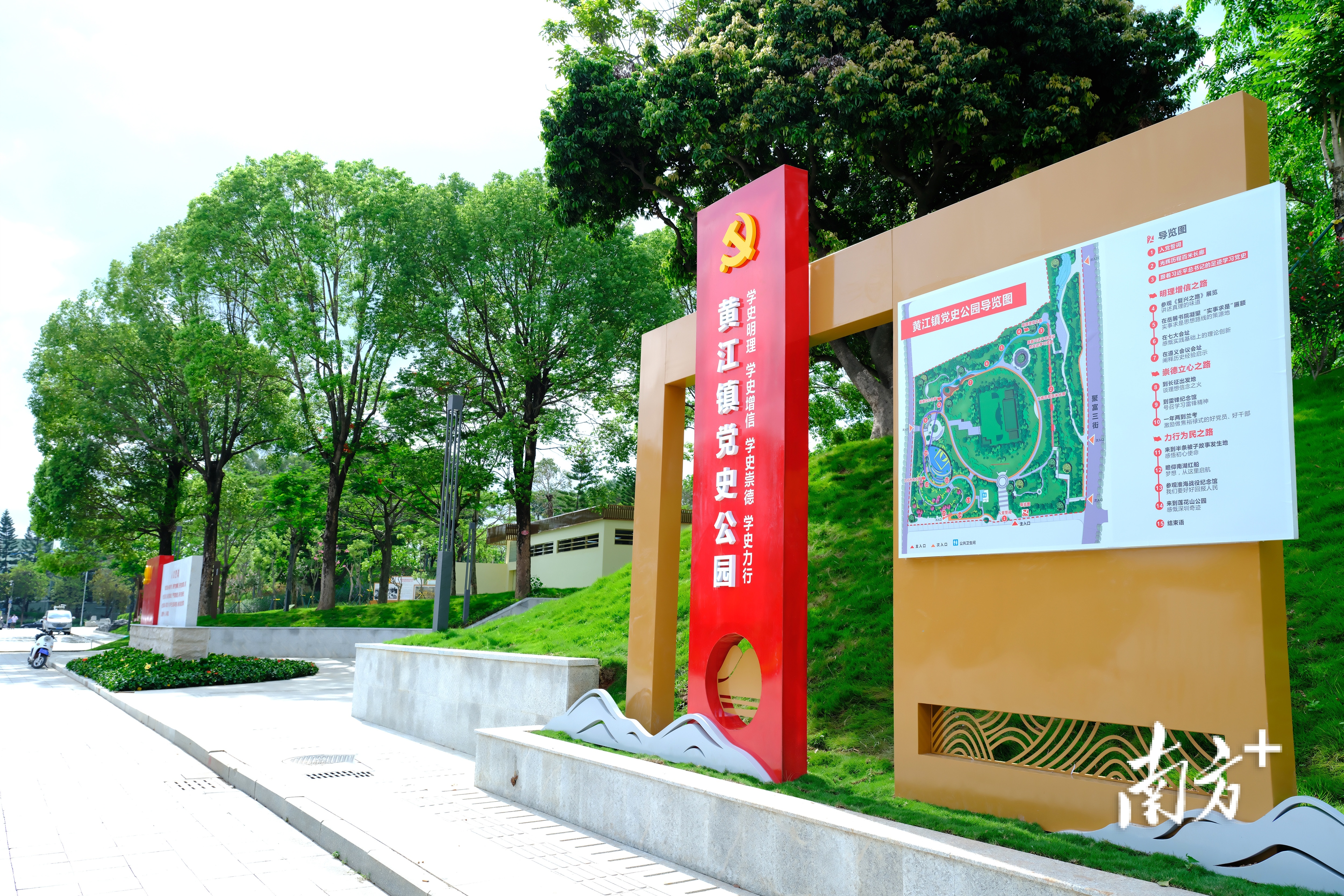 田美社区的党史公园占地面积约4.8万平方米,融自然景观与人文景观于一体,集党建文化与地域文化于一园,以党史学习“一廊三路”,向参观者展现党的100年历史的重要事件、重要人物。在这里,市民可以沿着光辉历程百米长廊重读中国共产党大事件、莞邑征程;走在学习党史之路上学习“明理增信、崇德立心、力行为民”、重温遵义会议、淮海战役等11个红色革命圣地的感人故事。