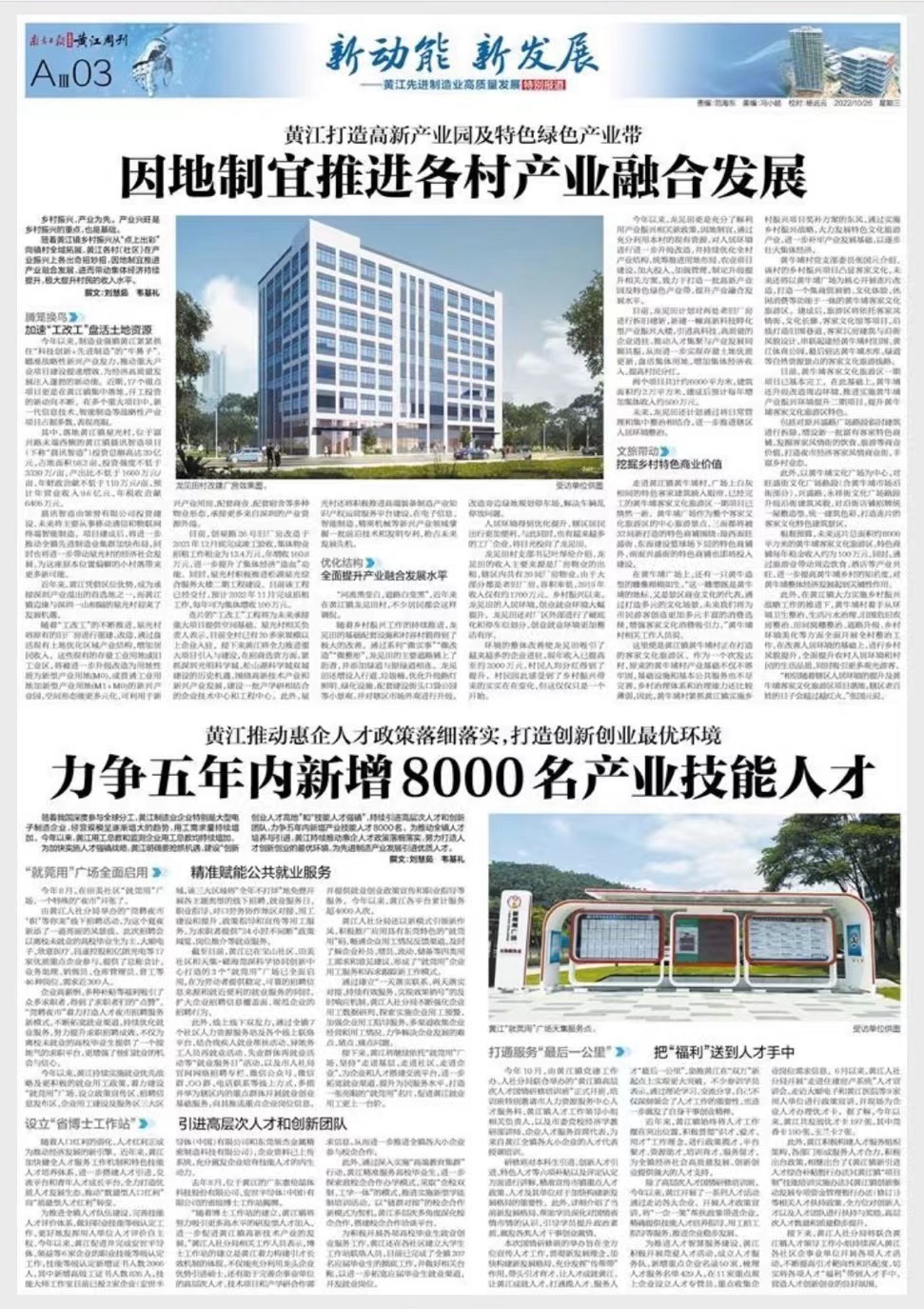 近年来,黄江镇始终将人才工作摆在突出位置,积极贯彻“识才、爱才、用才”工作理念,进行政策揽才、平台聚才、资源助才、培训育才、服务留才,为全镇经济社会高质量发展、创新创业提供强大的人才支持。