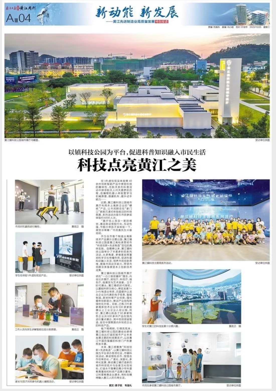 作为全市首个制造业高新技术产品展示主题公园,黄江镇科技公园是黄江高标准贯彻市“科技创新+先进制造”定位的具体实践。自揭牌以来,黄江镇科技公园举办了丰富多彩的系列活动,从多角度、多维度发挥基地科学文化传播作用,促进科普知识融入生活,培养市民创新思维,提高市民动手能力,带领市民群众亲身感受本土创新技术成果。