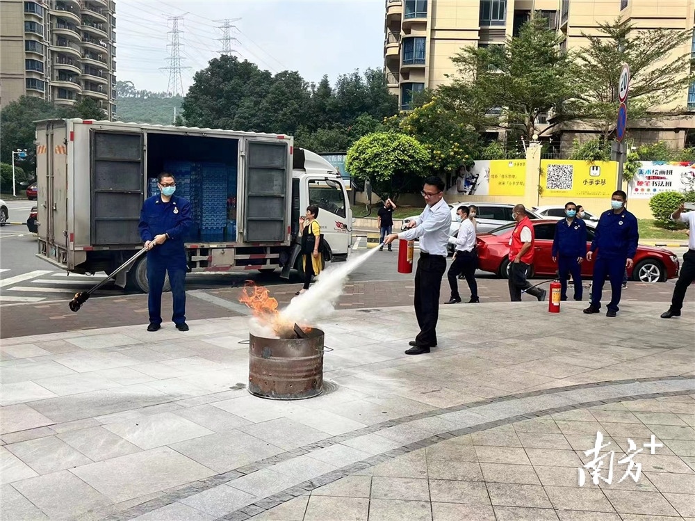 黄江消防救援大队在工业园区内组织消防演练。受访单位供图