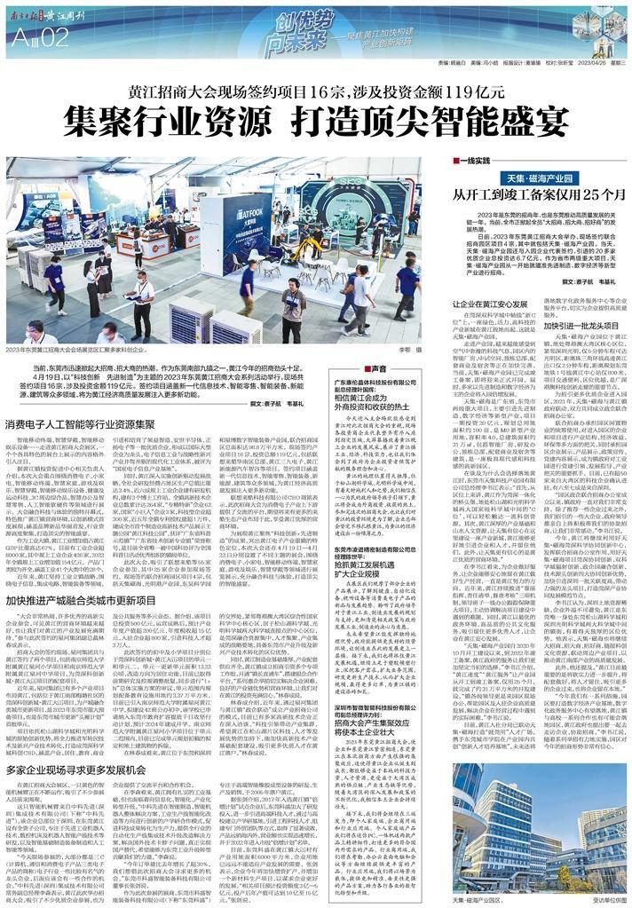 日前,2023年东莞黄江招商大会举办,现场签约联合招商园区项目4宗,其中就包括天集·磁海产业园。当天,天集·磁海产业园还与入园企业代表签约,引进的20多家优质企业总投资达6.7亿元。作为省市两级重大项目,天集·磁海产业园从一开始就瞄准先进制造、数字经济等新型产业进行招商。
