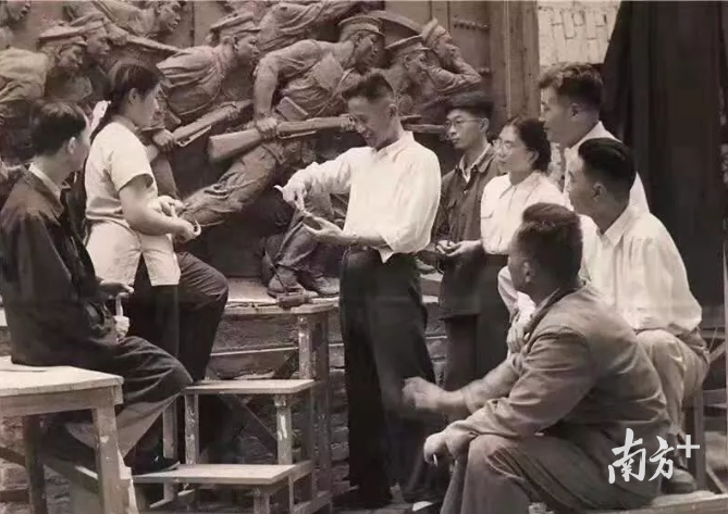 1952年,人民英雄纪念碑十面浮雕工作启动,“虎门销烟”“金田起义”“武昌起义”“五四运动”“五卅运动”“南昌起义”“抗日游击战争”“胜利渡长江”“支援前线”和“欢迎中国人民解放军”,10块浮雕全景式地展现了中国近现代革命历程。“每块浮雕都指定一个雕塑家负责,再带几个年轻人做助手。”当年陈淑光所在的美术组,由雕塑大师刘开渠主持,几乎集中了当时中国最优秀的雕塑家:滑田友、肖传玖、王丙召、傅天仇、王临乙、张松鹤、曾竹韶……