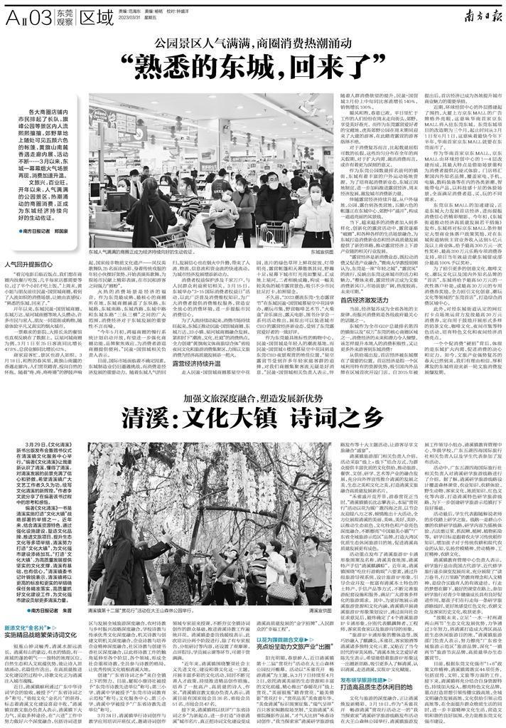 目前,根据东莞文化强市“1+8”政策文件精神,清溪镇需落实44项任务,包括宣传、文明、文旅等方面的工作。接下来,清溪镇将充分结合自身资源特色,持续加大投入,擦亮特色文化品牌,重点打造思想引领传播实践高地、全域文明融合发展高地、文化供给引领示范高地等,在全面提升群众物质生活的同时,进一步丰富精神文化生活,营造文明和谐的良好氛围,全力助推东莞文化强市建设。