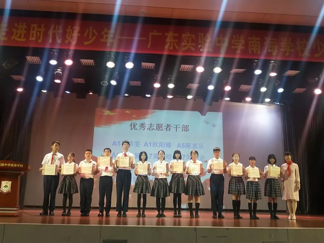 二、2018-2019学年优秀志愿者干部:A1庞博、A1招卓雯、A1欧阳臻、A2顾金昊、A5陈嘉乐、A6谭夏、A7黄思晗、A7刘姝企、A8陈婉敏、A8叶昌炎、A9李俞柯、A9李嘉芸、A9潘韵颖