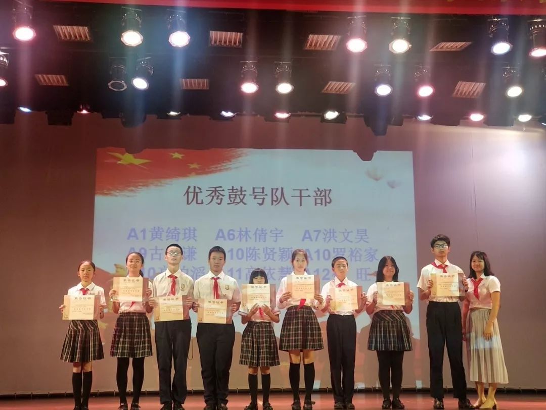 五、2018-2019学年优秀中队长:A1庞博、A2卢瀚涛、A3 林逸朗、A4裴婪宇、A5陈嘉乐、A6林倩宇、A7罗鸿妍、A8郑正、A9洪均柔、A10郝雨慧、A11伍楚晴、A12庄嘉慧