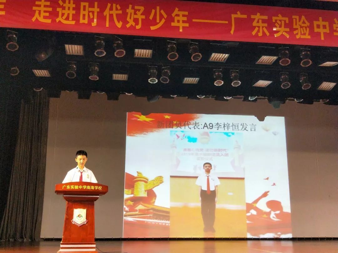 2019年5月30日星期四下午,我校初一年级在大礼堂里举行了一场意义非凡的活动——退队入团仪式。参加此次活动的校领导有:常务副校长陈健、党总支副书记刘春霞、学生处副主任许强,及初一级全体师生和新团员的家长们共同见证了,初一年级少先队员们快乐退队、光荣入团的难忘时刻。