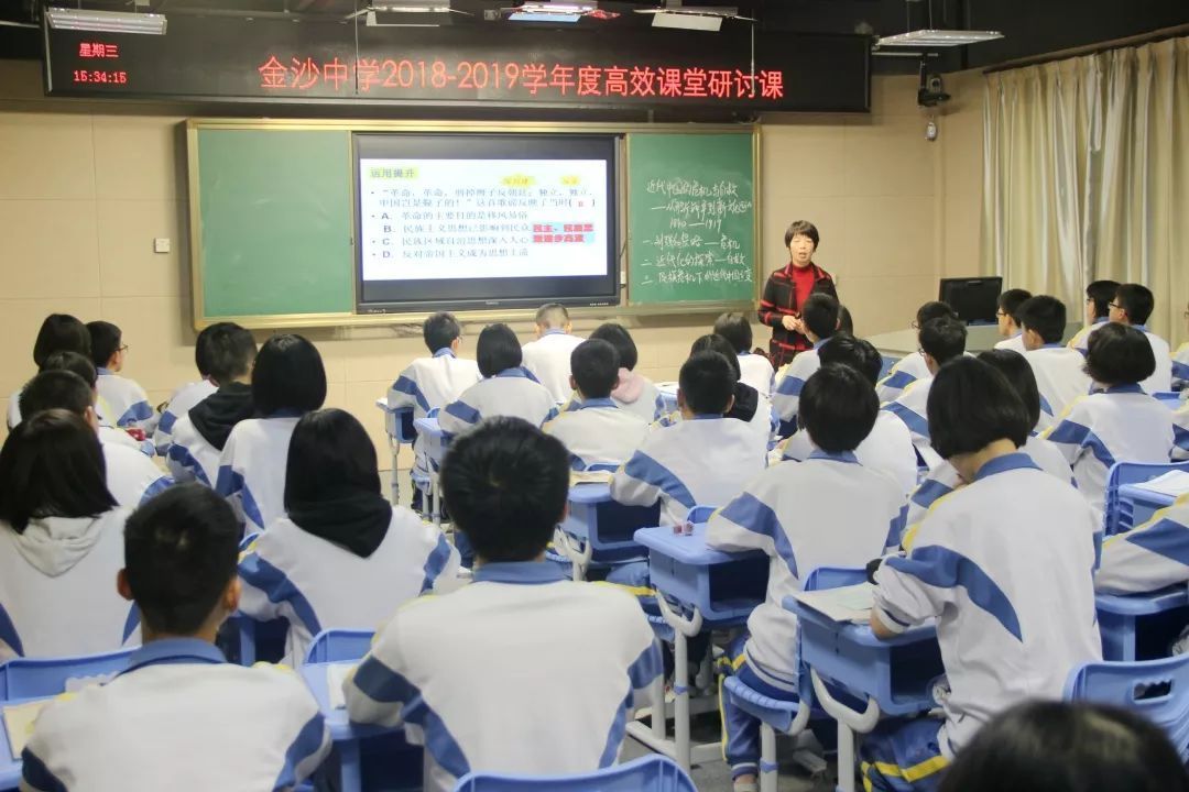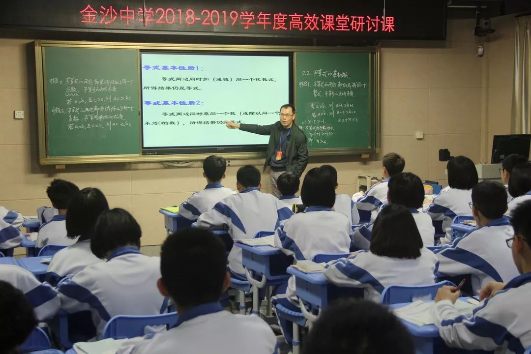 近日,金沙中学的高效课堂研讨课活动正在进行得如火如荼,上周展示的高效课堂研讨课有语文科麦惠兴、李茹穆、数学科邓朝明、黎爱娟、英语科殷炜棉、谭志琼、政治科彭大明、历史科江燕芬、黄映梅、生物科刘清槐、美术科欧阳碧玲、音乐科陈惠永、信息科陈朝晖、综合科徐然光、物理科陈例庄、化学科谭巧玲、体育科巫国文、谢福明老师。南海区教研室教研员叶旭华、郝丽、陈贻宇、董磊、郭圣有、关敬章、丹灶镇教育局黄叶珠校长在金沙中学校长蔡明露、副校长张润宏和教导处领导评委陪同下与全体相关科组老师以及兄弟学校教师参加了听课评课活动。