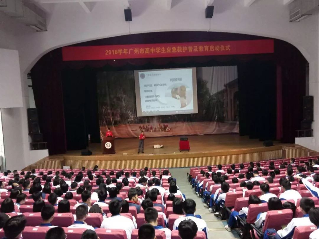 为进一步普及急救基础教育,全面提升我市学生应对突发事件的应急处置能力,保障学生身心健康,2018年底,市教育局印发《广州市教育局关于开展2018学年秋季学期高中学生应急救护培训工作的通知》,正式在全市高一学生中启动应急救护技能普及教育工作。邀请广州蓝天救援协会的专家以“大班基础讲解教学、演示讲解+分组练习”的形式,采取“送教到校”的方式对全市高一学生进行徒手心肺复苏知识和技能的普及性教育。