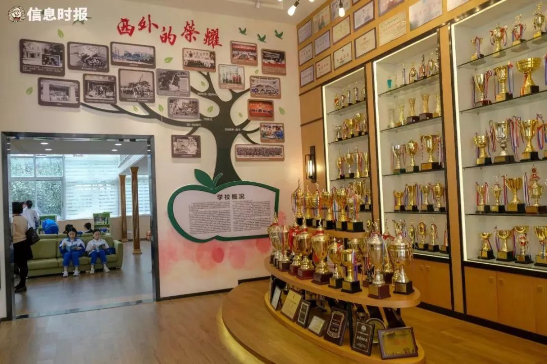 一名学生进入了西外, 便会接受系统的“金苹果”校本课程。比如说学英语,这里开设了12个外语教学情景室,模拟了购物、医院、海关、机场等多个真实场景,让学生浸入式学习英语。