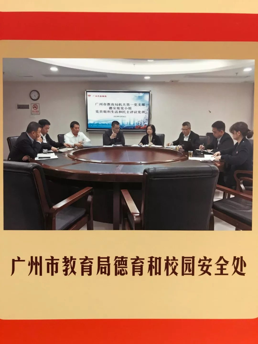 广州市教育局德育和校园安全处认真贯彻“安全第一,预防为主,综合治理”的方针,以创建“平安学校”为抓手,强化校园及周边综合治理,深入开展安全隐患排查整治,大力开展安全教育培训工作,积极组织参加各项活动,为推动我市教育现代化全面上水平、走前列营造安全稳定校园环境做出了积极贡献。