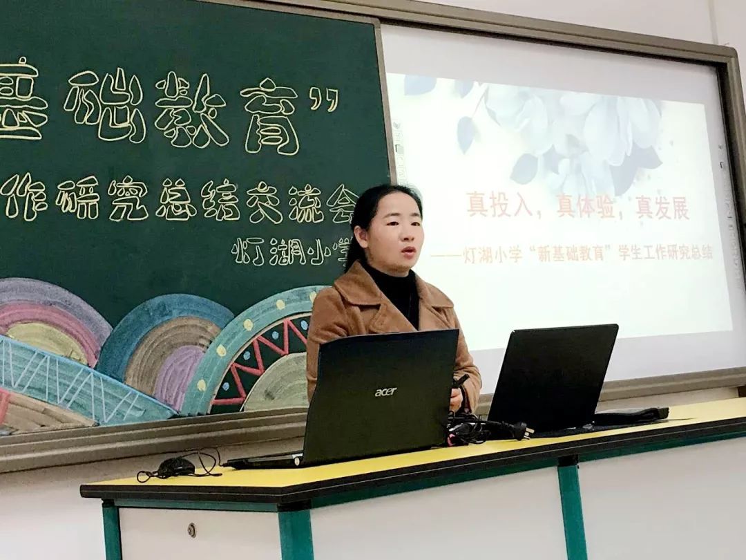 首先是由“新基础教育”学生工作项目负责人李艳芬老师作本学期工作总结。李老师从“日常研究”、“专题研究”、“活动整合”、“问题反思”等方面,以学生的成长为立足点,总结本学期在灯湖四季活动、学生能力状态、班主任梯队建设等方面的变化和进步;以现存问题为突破点,对增加四季活动的研究力度、促进班队活动多样化、班主任理论学习强化等方面提出了设想。