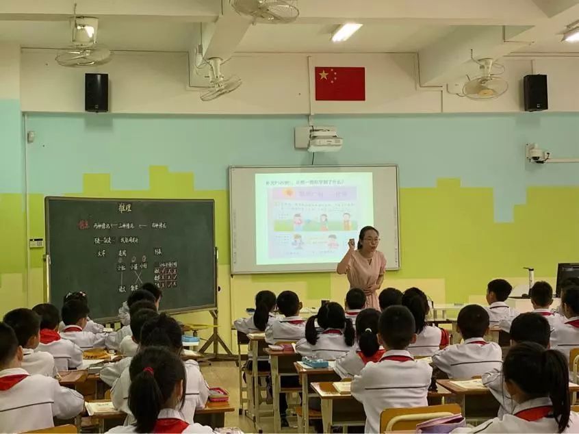 黄巧梅老师在本节课中一直紧抓推理方法的显性化,从两种情况,到三种情况,最后到四种情况,一步一步让学生感悟:其实方法都一样!只需要找准关键信息,就能化繁为简,确定答案。课程结束之际,学生畅谈本课所学会的知识与方法,精彩的回答让在座的老师们都投以欣赏的目光。