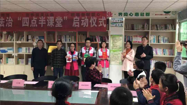 在启动仪式上,惠城区司法局向东河社区赠送了宪法读本、人民调解实用指南、法律援助实用手册等书籍,丰富了课堂的法律书架。随后,在义工的带领下,同学们齐声诵读宪法,体验浓浓的法治氛围。最后,同学们领取法治宣传小礼物并参观法治“四点半课堂”。