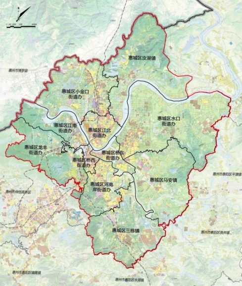此次规划期限为 2020-2025 年。 根据规划草案,此次规划范围为惠城区(不含横沥、芦州),包括江北、江南、桥东、桥西、河南岸、龙丰、水口、小金口等8个街道,以及三栋、马安、汝湖等3个镇,总面积约558.47平方公里。