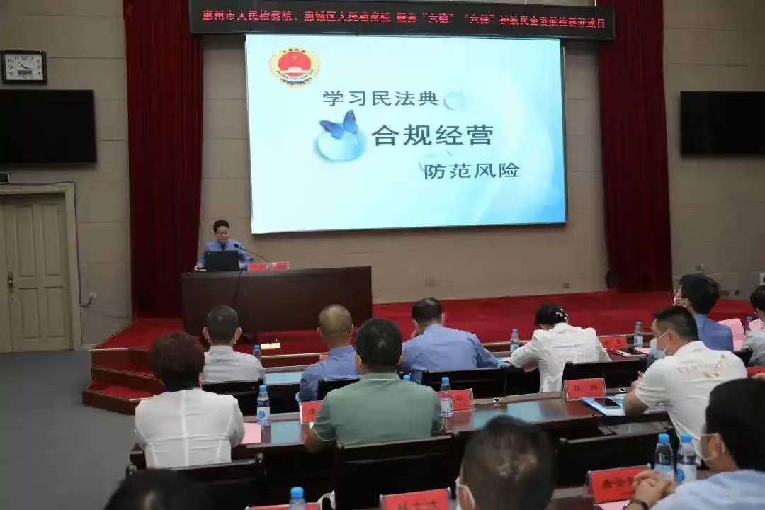 随后,惠州市人民检察院第四检察部检察官刘娟以《学习民法典 合规经营 防范风险》为题,从《民法典》对民营企业的意义、《民法典》对民营企业的保障、遭遇诉讼如何应对、检察机关能为民营企业提供哪些服务等四个部分,给与会人员上了一堂生动而翔实的法治课。