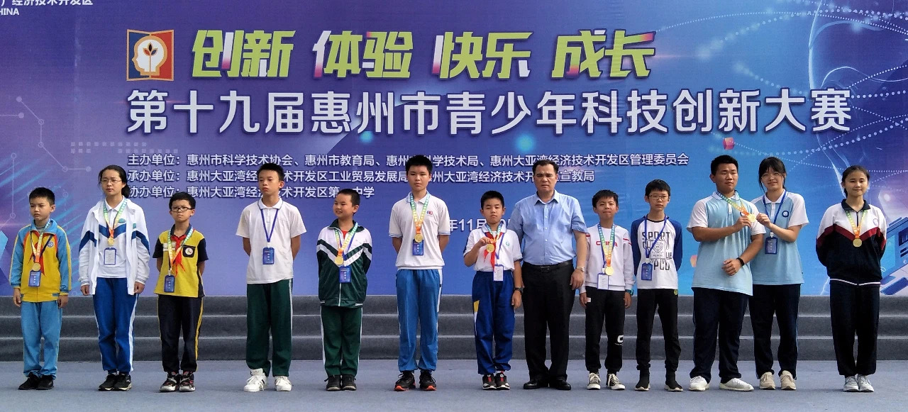 2020年11月20日至22日,第十九届惠州市青少年科技创新大赛在惠州大亚湾经济技术开发区第一中学隆重举行。惠城区组织92支队伍170名选手参加6大项共92件作品参加比赛,一举获得一等奖23项、二等奖48项、三等奖20项,总成绩名列前茅。
