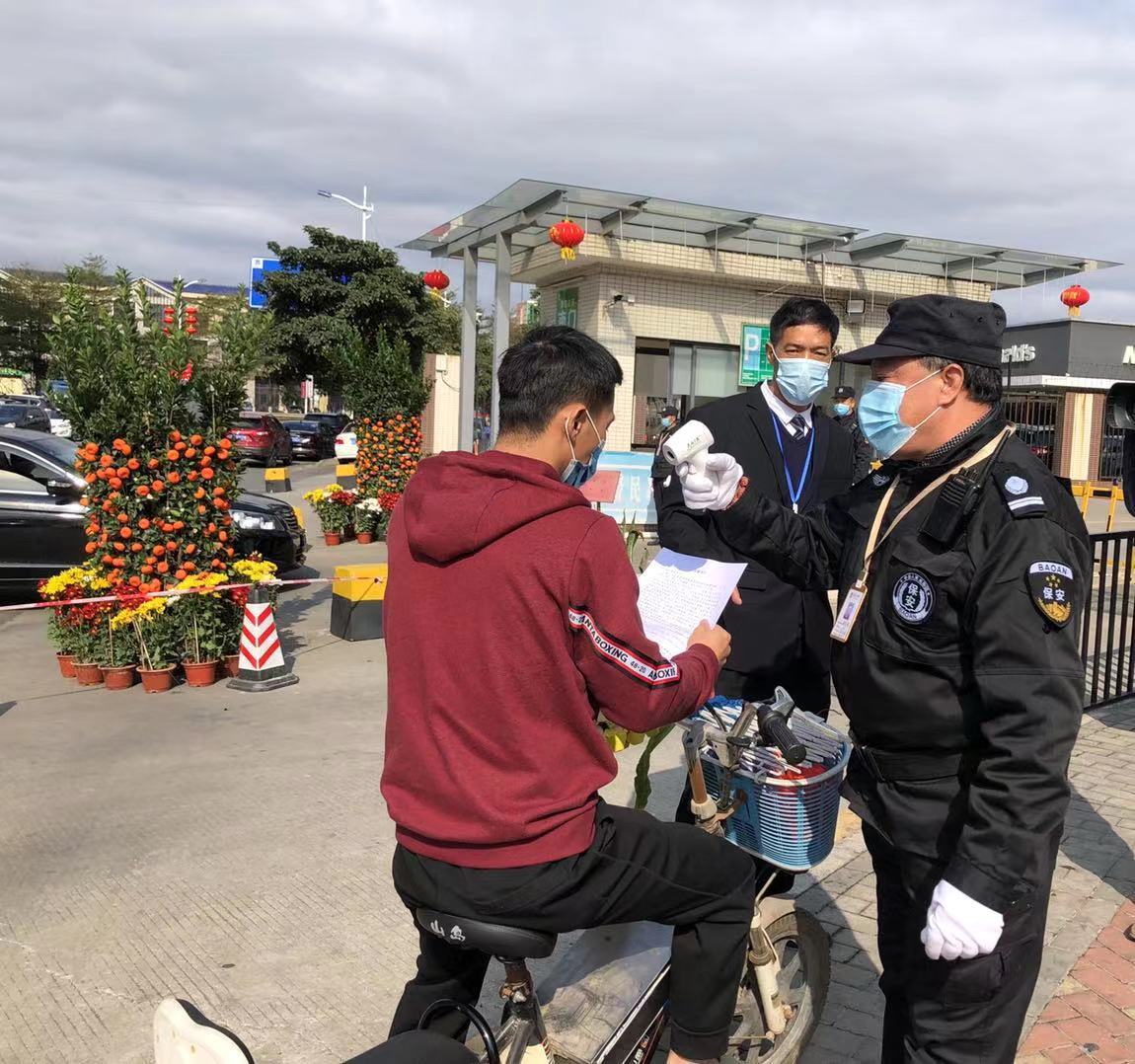 “针对从湖北回来的业主,我们先登记测量体温,跟镇府相关部门联系,到中堂医院进行检查,出了报告没问题我们上门派发口罩和讲解安全事项,让他们在家呆14天。”该主管说。