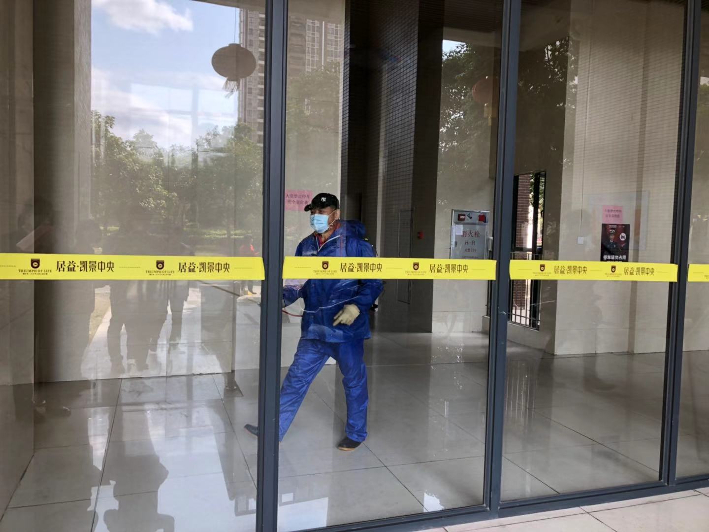 居益花园客服主管表示,安排工作人员对电梯大堂扶手以及电梯消防通道等进行安全消毒,一天消毒两次。小区共有四个出入门口,人来人往比较杂乱,现在关了三个门,保留一个门进出,这样以便对人员进行管理。