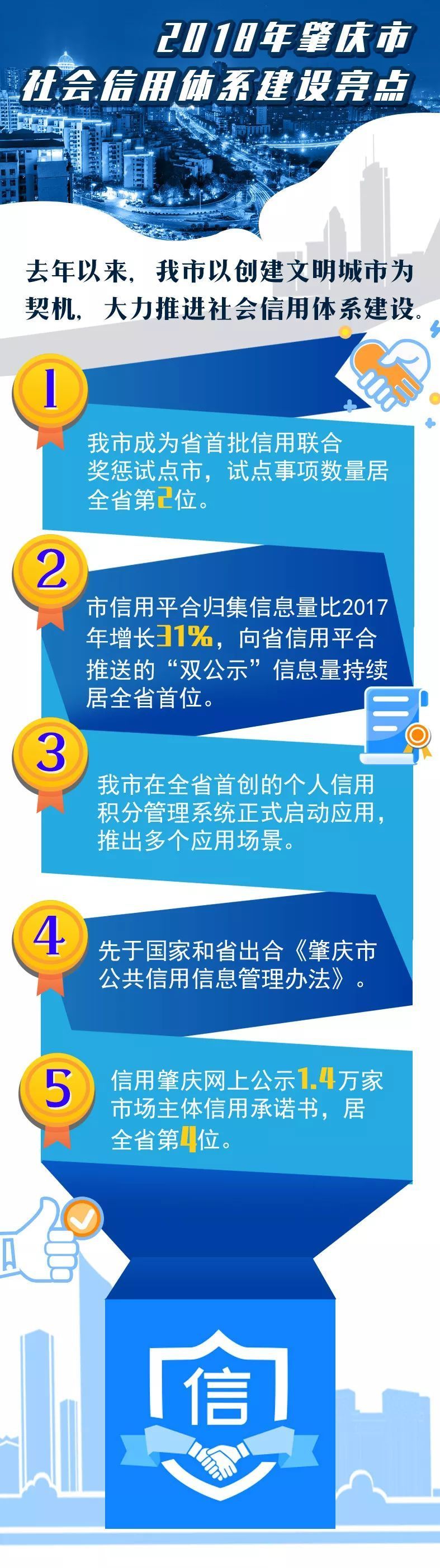 过去一年,肇庆以守信受益、失信惩戒为导向,以信用信息记录、共享、公开、应用为主线,积极推动信用平台建设,完善信用制度建设,落实部门联合奖惩,推动信用应用,全面推进肇庆市社会信用体系建设工作,成效显著。