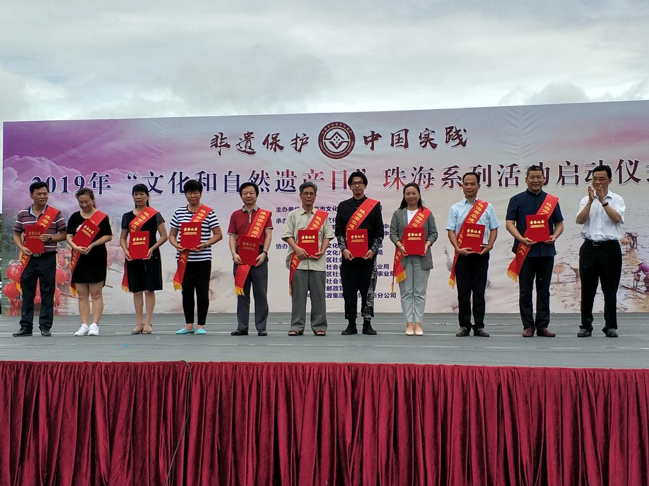 启动仪式现场颁发了珠海市第八批市级非物质文化遗产代表性传承人证书,并进行珠海市首套非物质文化遗产代表性名录题材系列纪念邮品发行。同时,仪式以授予非遗项目“活化利用能人”称号的形式,鼓励近年来在非遗活化利用方面作出贡献的各领域人士。