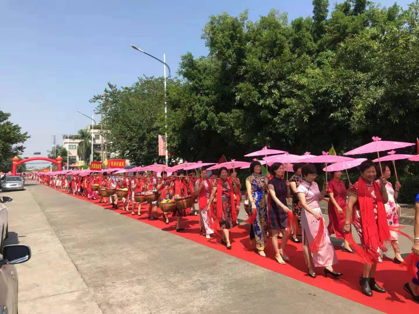 旗袍、红地毯、担花篮,走村、串户、拜祠堂……10月19日,一场特色“出嫁女回娘家,念亲恩拜祠堂”活动企石镇江边村举行,超过1000名身穿靓丽旗袍的妇女队伍在700余年建村史的江边村内走街串户,传统与时尚的融合给这座古村带来别样魅力。