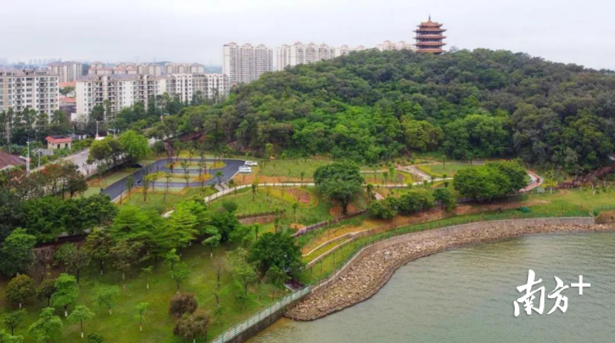 经过升级改造后,这条滨江绿化带沿着东江企石段蜿蜒而行,串联生态修复花园、黄大仙公园、水资源科普教育园、东江金海岸体育长廊、滨江休闲东江(企石段)区段花园等节点,众多景观一通到底,处处绿意盎然。