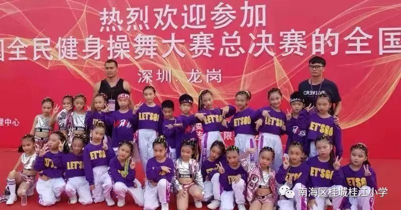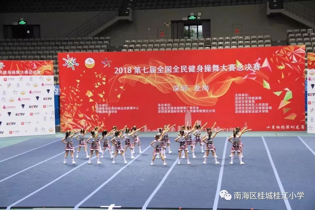 踏歌起舞扬起精彩,激情飞扬律动青春。10月22日至10月26日,桂江小学炫蓝啦啦操队参加在深圳信息技术学院举行的2018年第七届全国全民健身操舞大赛(全国赛),啦啦操队员们用热情洋溢的舞蹈,展示出桂江学子活力四射、昂扬向上的精神面貌,最终斩获了:小学乙组街舞、爵士舞双料冠军。