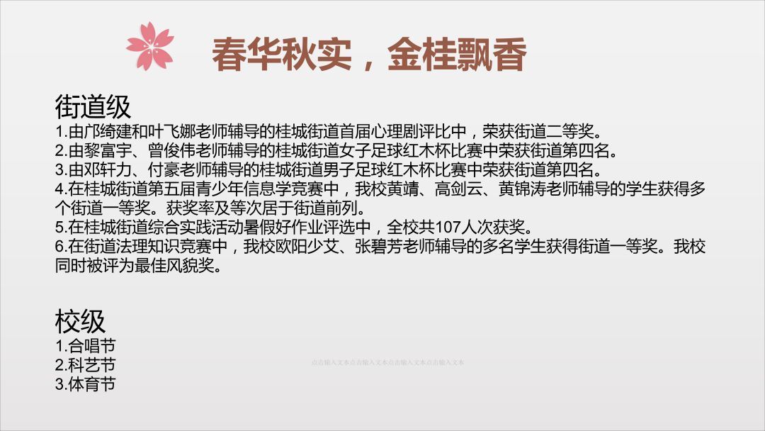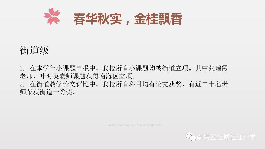 “亲爱的老师:桂江小学每一个前进的步伐,都留下您清晰的脚印;每一项卓越的成果,都流下您晶莹的汗珠;每一片灿烂的荣光,都离不开您振翅的闪烁。感恩您的付出,感恩您的奉献!”期末总结会上,全体老师手捧林校长充满真挚情感的新年贺卡静静地读着,细细地品味着!