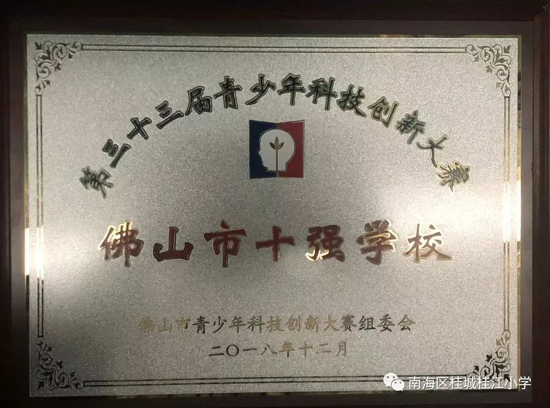 我校一直走在科学创新的路上,2018年12月,我校举行了“少年科学院”成立仪式;紧接着,我校被评为“第33届青少年科技创新大赛佛山市十强学校”;2018年度全国中小学科学教育体验活动展示交流暨科学研学旅行活动于2018年12月29日—2019年1月1日在北京成功举行。我校关文轩、陈子聪、严晓程通过了市赛、省赛的选拔,参加了全国的决赛,分别获得了物理高年级组金奖、银奖、铜奖的好成绩。陈庆龙老师被评为优秀辅导教师。