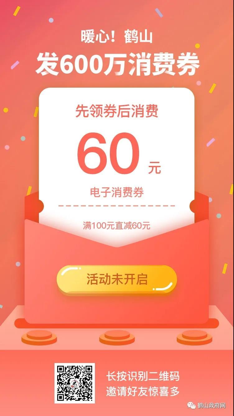 重磅好消息!本周起,鹤山将陆续发放10万份,共600万元的电子消费券!您消费我们帮您巨幅打折!