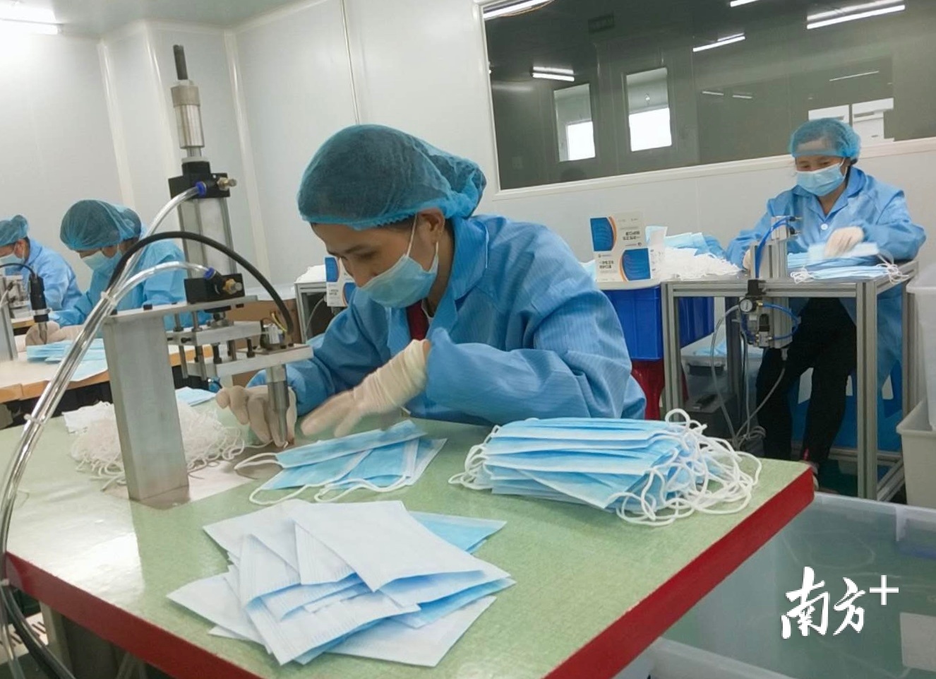 经过多番找寻,最终辖区内一家生物医疗科技企业,答应合作筹建生产线。同时,依靠平时积累的人脉,在深圳一家口罩机生产厂,“抢到”4台口罩机,又辗转从东莞一家企业拿到原材料。