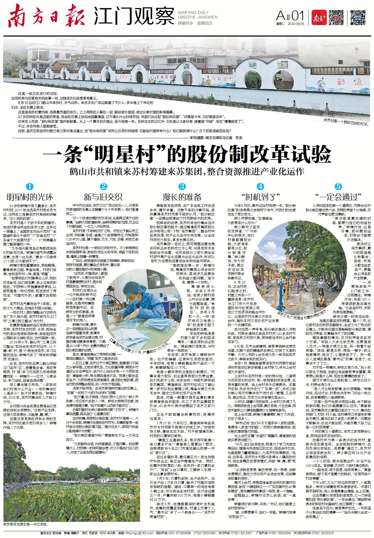 电商小铺采用的正是股份制模式。“村集体是大股东,创业者持有股份负责运营,我们先做子公司,未来会统一将股权转移到来苏集团。”高智泉说,来苏村还成立了鹤山第一家村级物业管理公司,筹备与第三方资本合作,推动文旅和农旅产业发展。