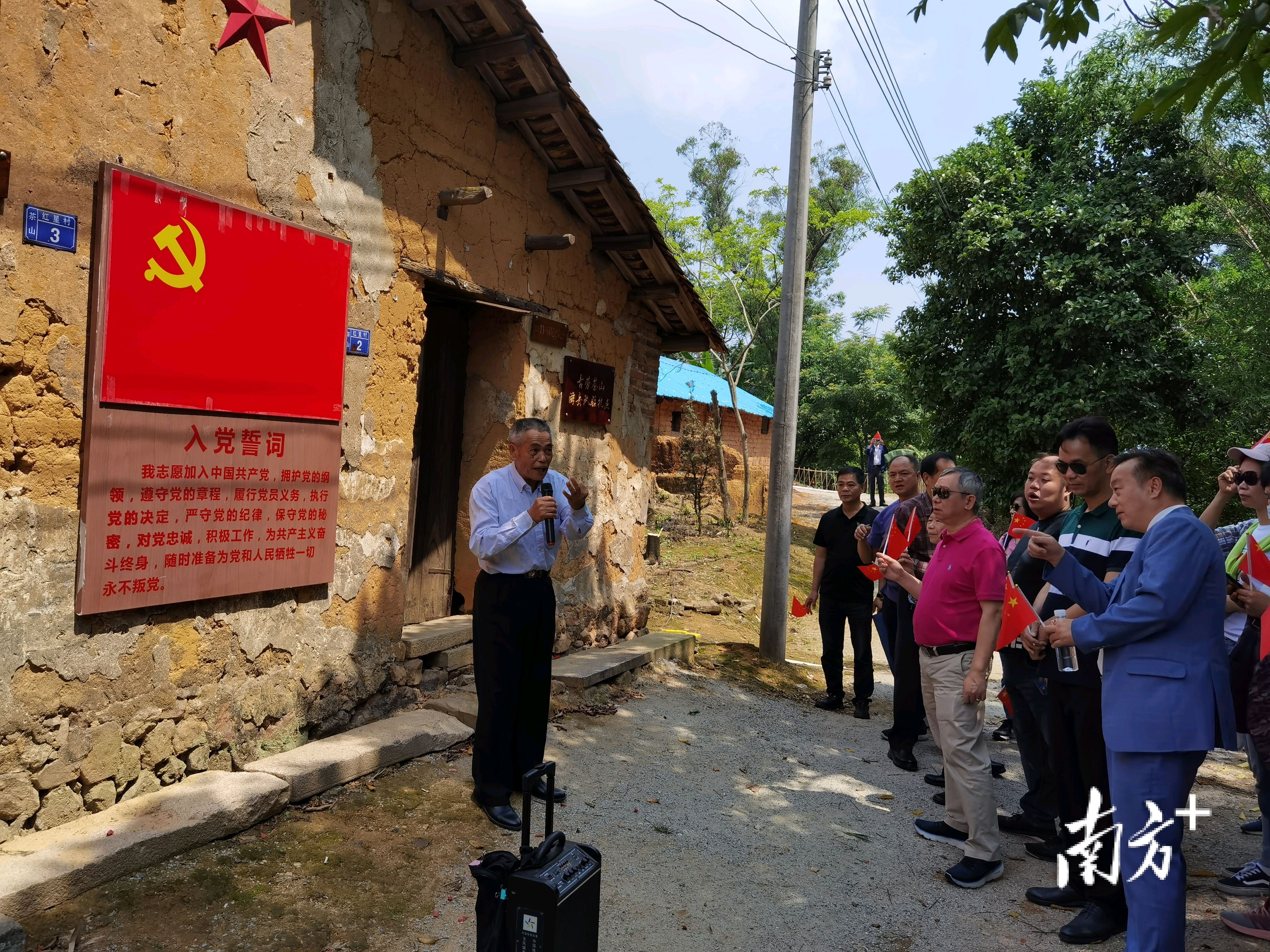 11日一早,澳门鹤山同乡会、澳门鹤山青年会会员又登上西江之畔的古劳茶山,来到革命老区发源地——红星村,在这里追随先烈的足迹,聆听退休校长李权亨讲解革命先烈在古劳茶山打游击的历史,缅怀先辈的英勇风姿。